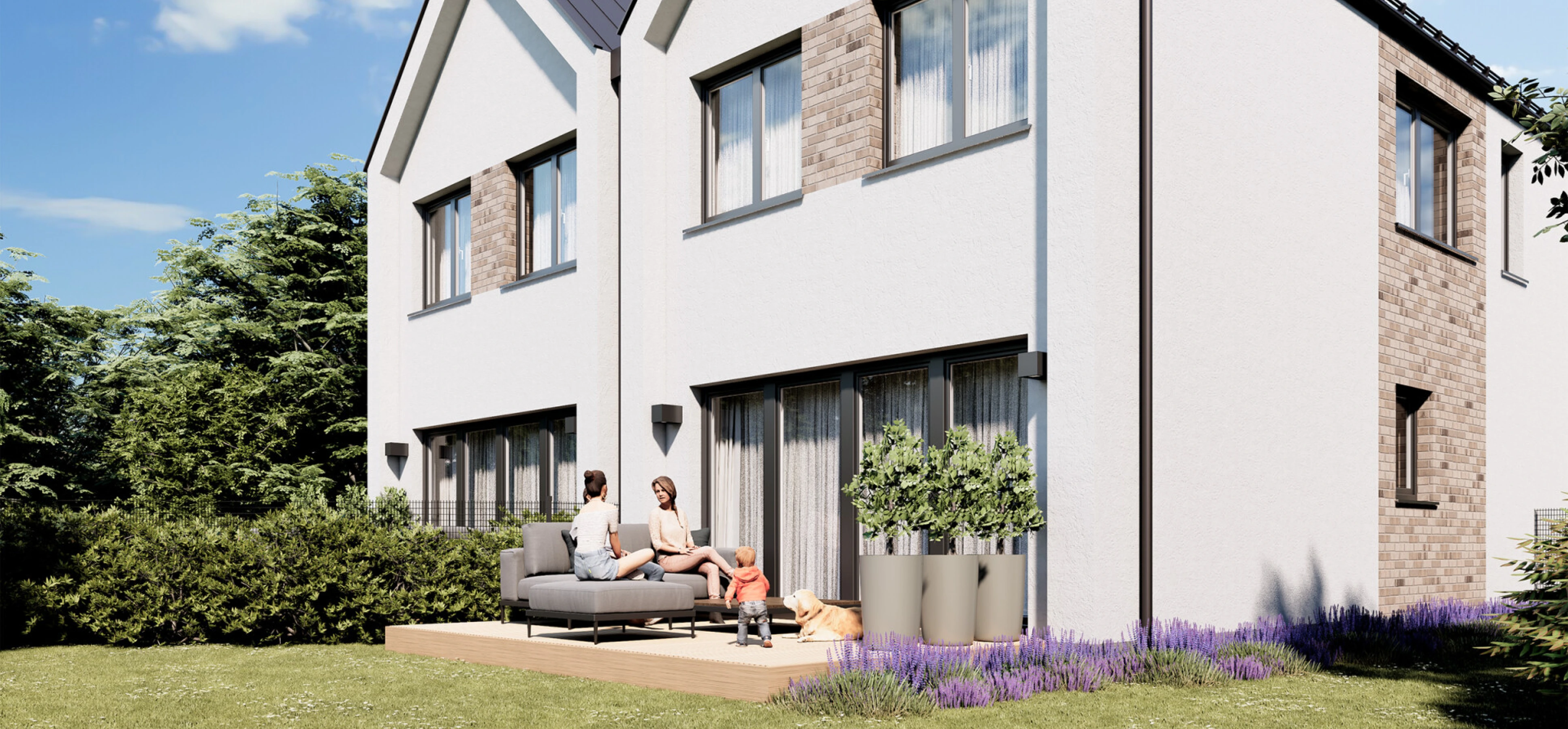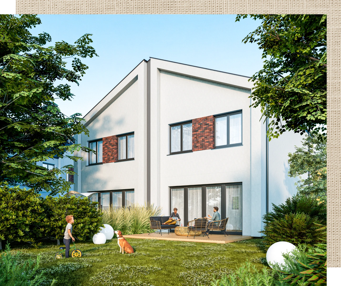 Zamieszkaj na kameralnym, ogrodzonym osiedlu w zielonej części Wawra. Każdy dom ma własny ogród i front skierowany prosto na pas drzew i ogródki działkowe.