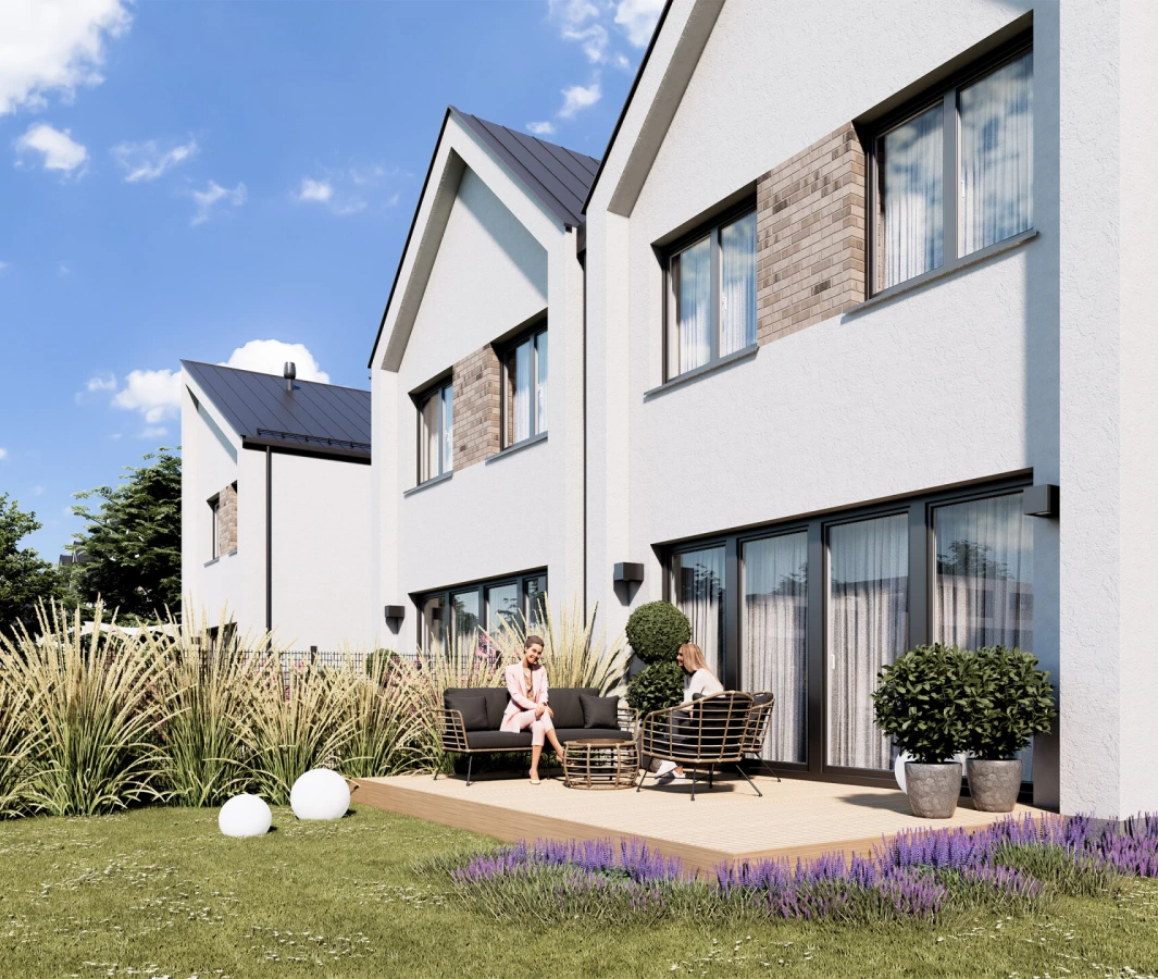 Własny dom z ogrodem w Warszawie to prawdziwa rzadkość – szczególnie, gdy ogród ma południową ekspozycję, dużą powierzchnię i pełną prywatność. W Błękitnym Wawrze każda nieruchomość posiada przestronną ogrodzoną działkę o powierzchni od 256 do 308 m², na której znajduje się wydzielony ogród o metrażu od 127 do aż 193 m². Południowa orientacja sprawia, że słońce towarzyszy mieszkańcom przez większą część dnia, nawet zimą. To przestrzeń, która daje swobodę – do odpoczynku i do życia w rytmie natury.