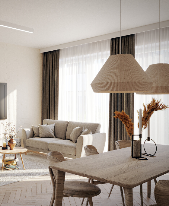 Na piętrze każdego domu znajduje się osobny gabinet z dużym oknem, oddzielony od części dziennej. To idealne miejsce do pracy, nauki lub spokojnego odpoczynku. Naturalne światło sprzyja koncentracji, a poczucie odrębności pozwala zachować równowagę między obowiązkami a domowym rytmem dnia. To rozwiązanie, które doceni każdy, kto potrzebuje przestrzeni, by w ciszy i skupieniu zająć się swoimi sprawami.