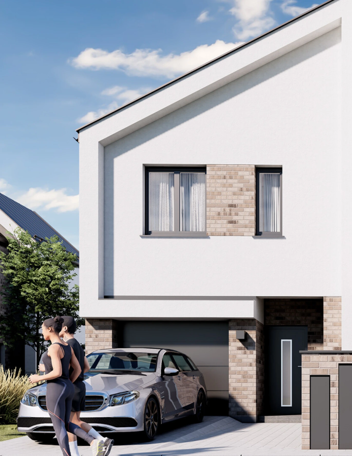 Wspieramy elektromobilność. Dlatego w garażu każdego domu na osiedlu Błękitny Wawer znajduje się punkt szybkiego ładowania samochodów elektrycznych. To praktyczne rozwiązanie dla tych, którzy już dziś wybierają ekologiczny kierunek – i chcą ładować auto wygodnie, u siebie, o każdej porze dnia. Ładowanie w domu oznacza niższe koszty niż na publicznych stacjach. A jeśli zdecydujesz się na instalację fotowoltaiki – samochód załadujesz niemal za darmo, bezpośrednio z energii słonecznej.