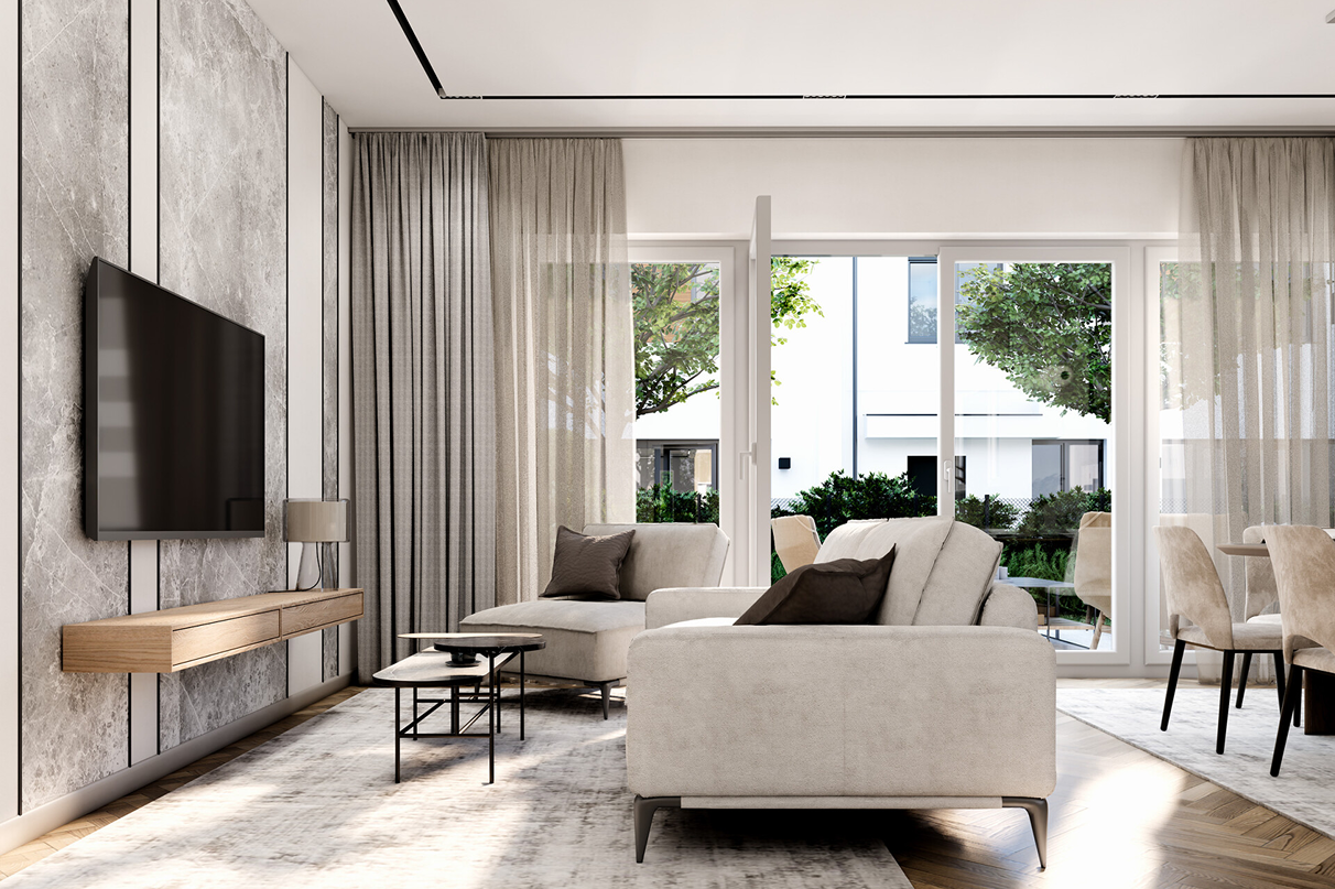 W naszej najnowszej inwestycji zastosowaliśmy ciepłe parapety we wszystkich oknach oraz ciepłe progi w oknach tarasowych, drzwiach wejściowych i bramie garażowej. To nowoczesne rozwiązania eliminujące tzw. mostki termiczne – miejsca, przez które zwykle ucieka ciepło. Dzięki nim wnętrza są lepiej izolowane, bardziej energooszczędne i przyjemniejsze w codziennym użytkowaniu. Więcej ciepła zostaje w domu, a zimne powietrze nie ma jak się przedostać.